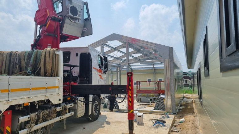 QEB시스템은 중간 기둥없이 건축물 폭 18m, 높이는 8m, 길이는 무제한 가능하며, 2층 이상의 건축물은 H빔과 복합 시공 가능 합니다. 모든 자재는 용융아연도금강판(HGI)을사용하여 공장에서 제작되어 품질과 내구성이 우수하며, 최적화 설계를 통하여 일반 구조물보다 약 30% 정도 비용 절감되어 경제성이 뛰어 납니다. 또한 자동설계 생산으로 현장 작업이 필요없고 BOLT로만 설치되므로 시공 빠르며, 100%재활용이 가능 합니다. 통합 프로그램에 의해 구조 계산, 설계, 생산이 자동으로 연결되므로 신속 정확한 업무 처리와 치수 정밀도 유지로 시스템에 대한 신뢰성을 확보할 수 있습니다.