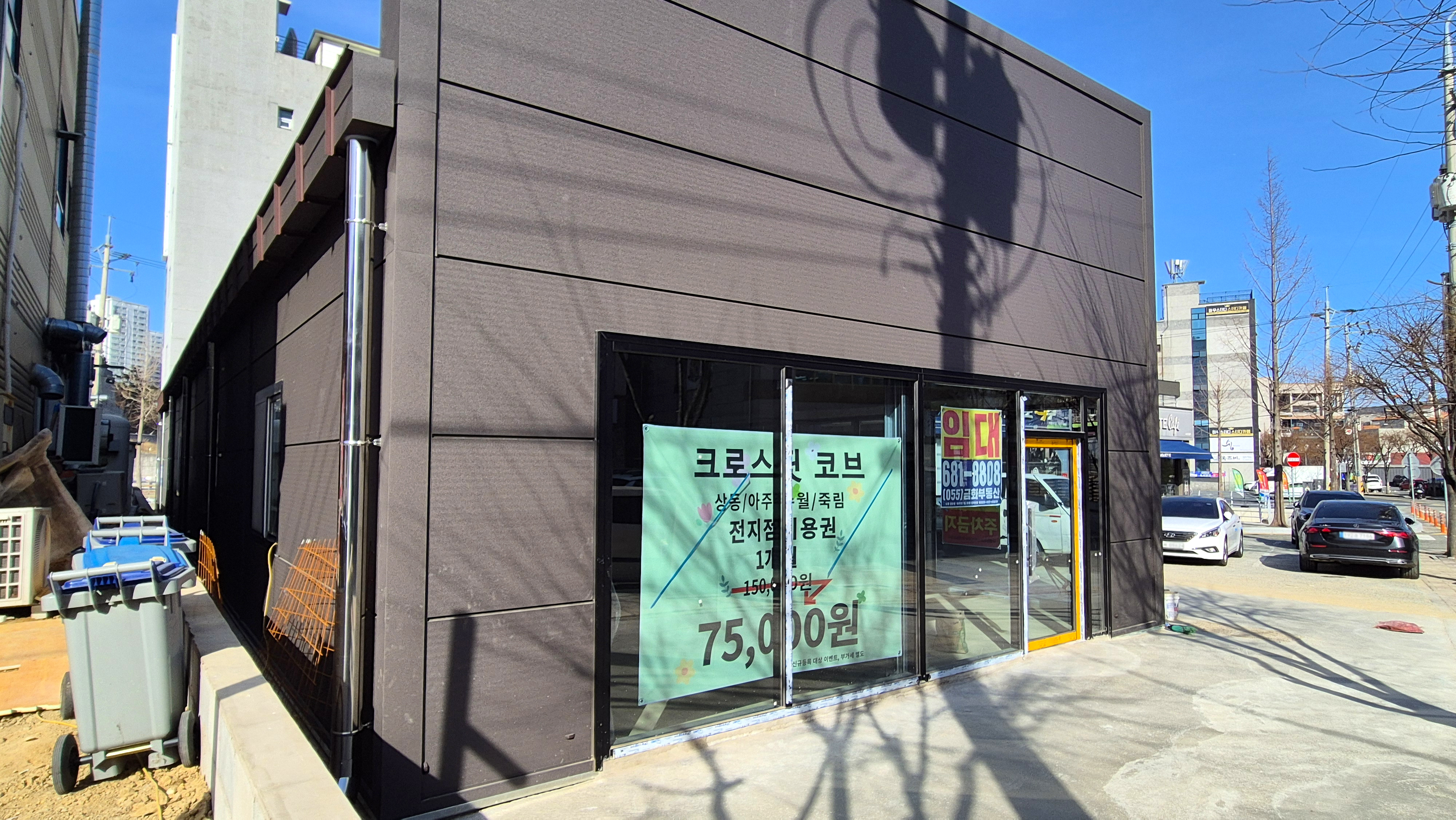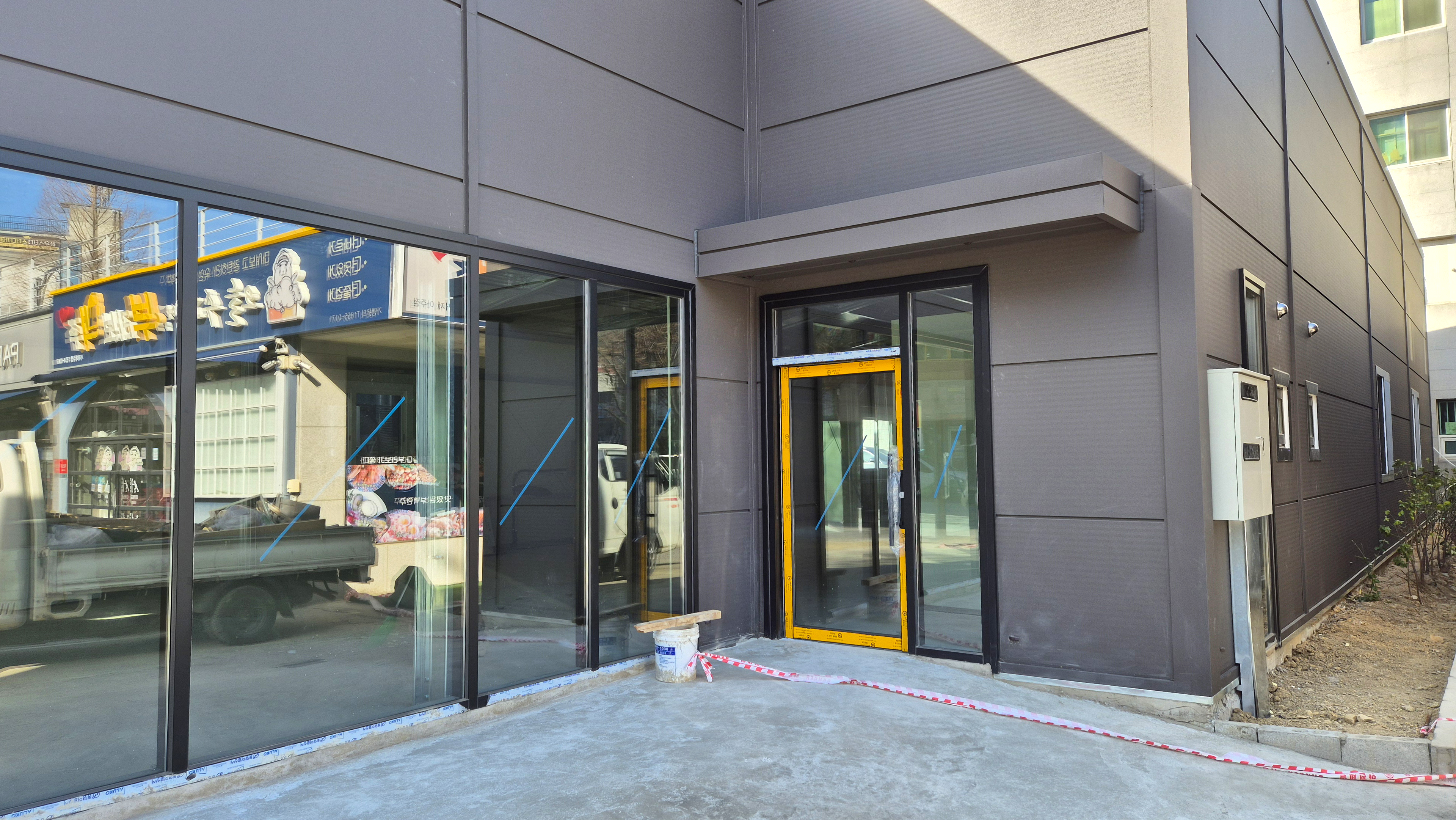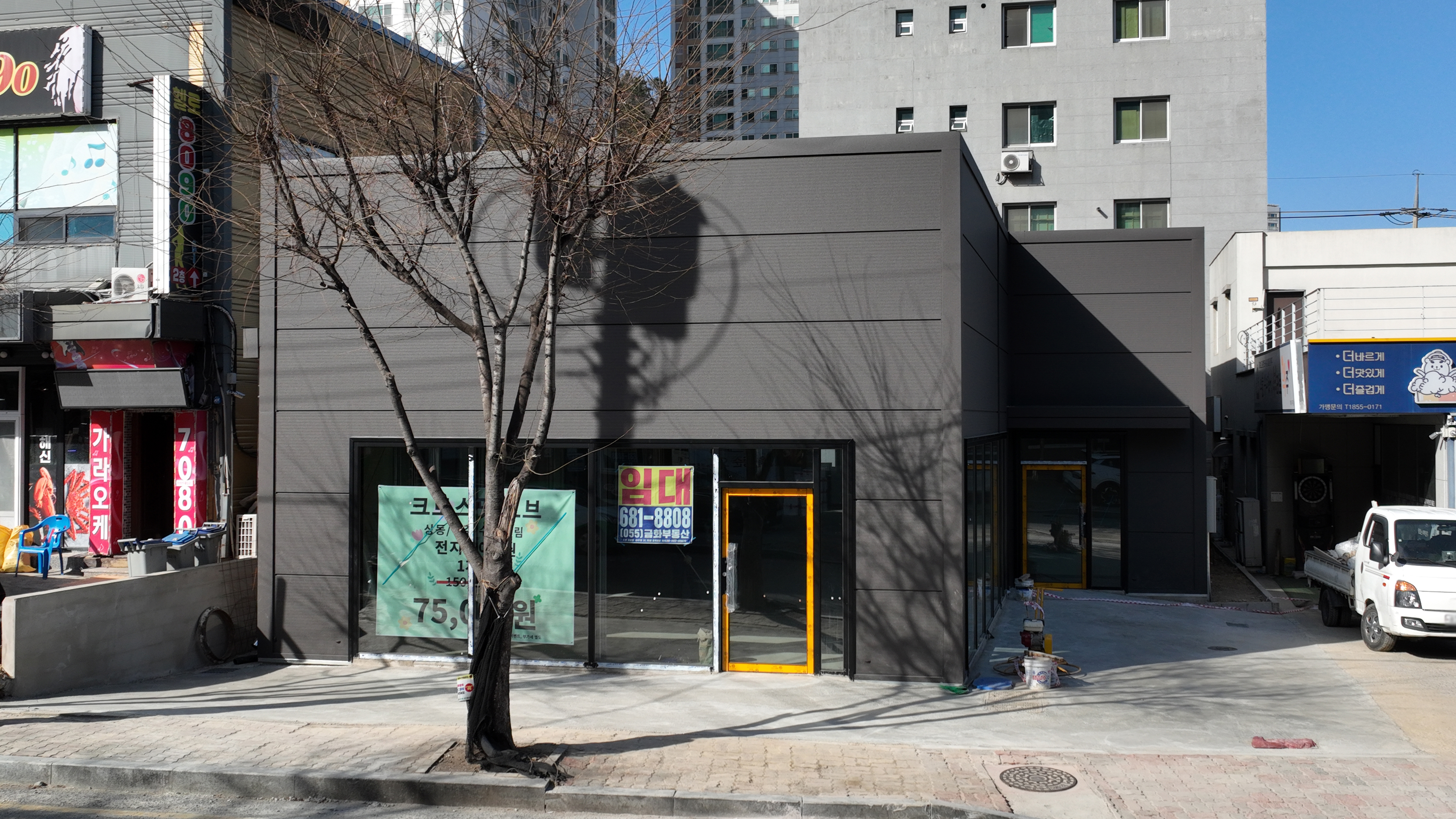 주변에 아파트 단지가 많고 도로와 인접한 상가 노출도가 중요한 지역이기 때문에, 유니스톤 판넬을 사용하여 고급스러운 외관을 연출할 수 있었습니다.