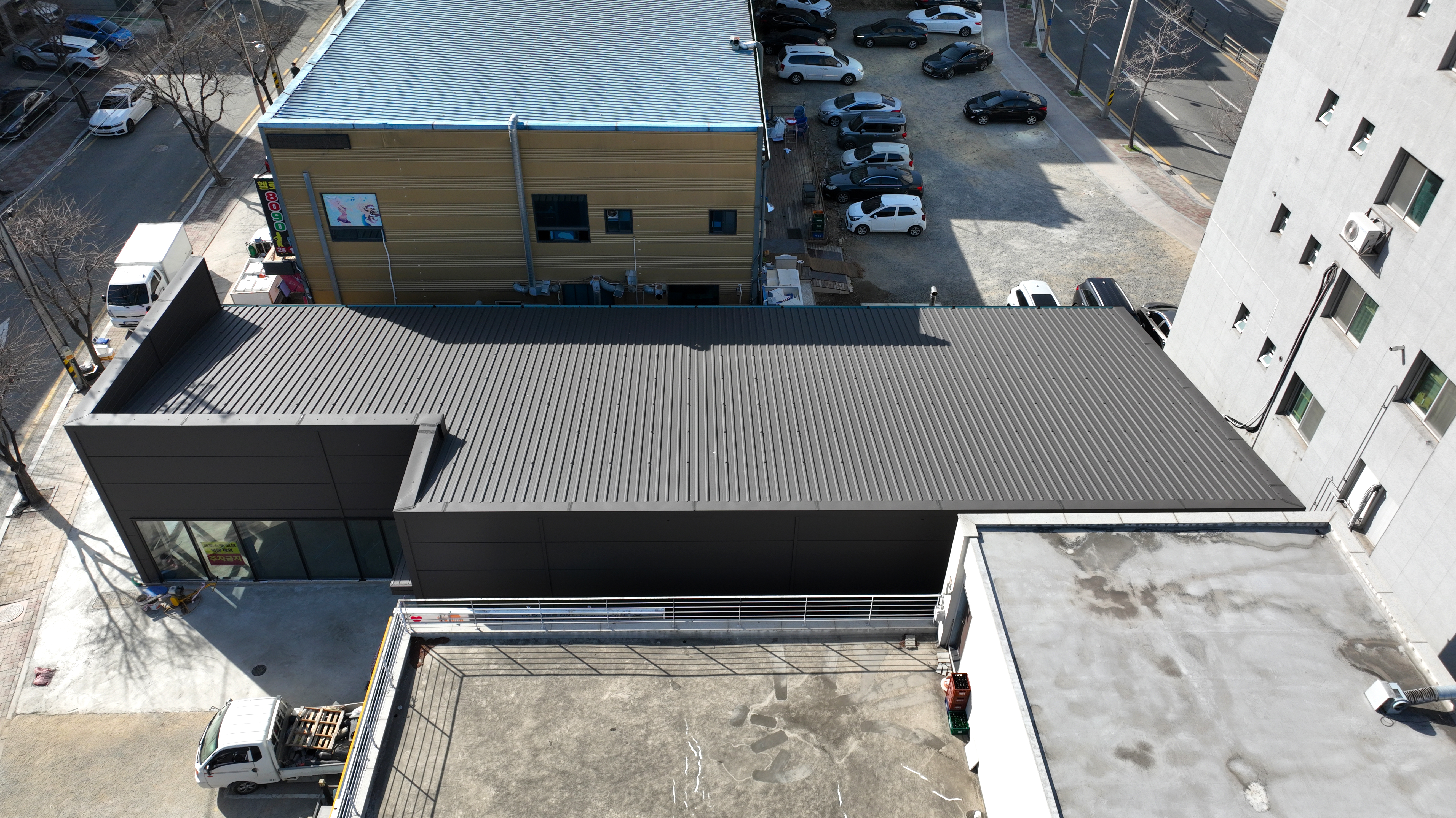 LEB 시스템을 적용한 조립식 경량철골 구조, 약 149평 규모의 상업용 공간입니다.