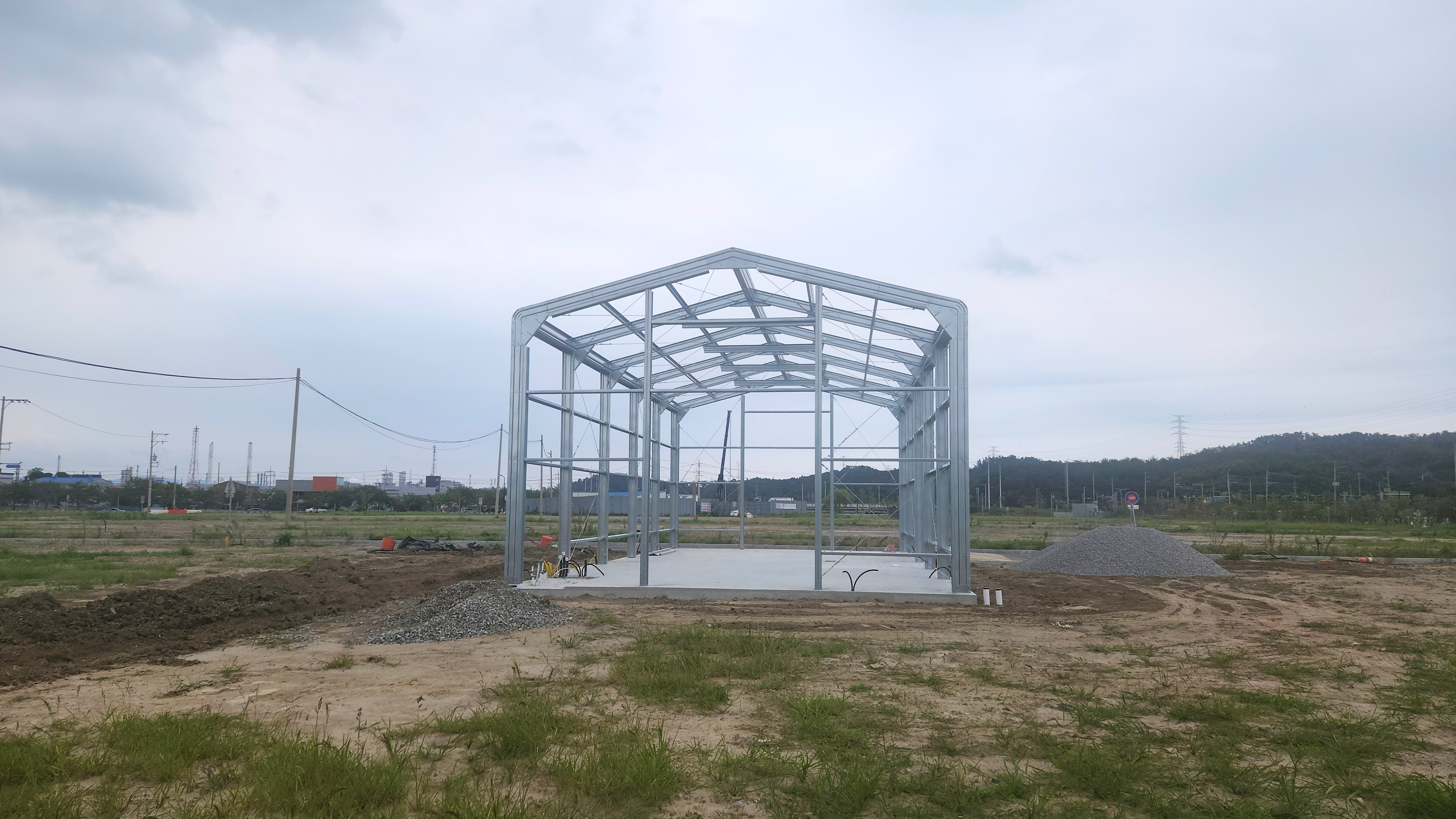 울산광역시 울주군 청량읍 덕하지구에 위치한 이번 건축물은 제2종 일반주거지역에 들어선 근린생활시설로 L.E.B 시스템을 활용한 조립식 경량철골 구조로 시공되었습니다.