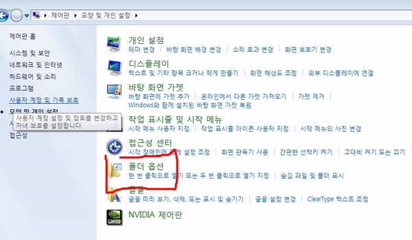 1. 제어판 들어가서 [폴더 옵션] 클릭