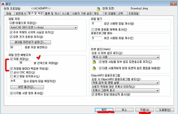01. 캐드 자동저장 설정하기